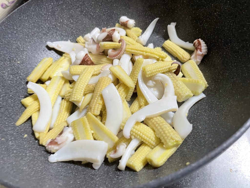 玉米筍炒花枝